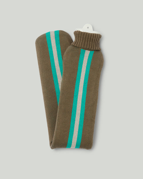 Weiße XL-Wärmflasche aus natürlichem Latexgummi mit grau gestreiftem Strickbezug aus Bio-Baumwolle. Der Bezug ist angenehm weich und kratzt nicht. Durch die trendige Farbzusammenstellung passt diese XL-Wärmflasche nicht nur ins Bett, sondern auch auf die Couch.