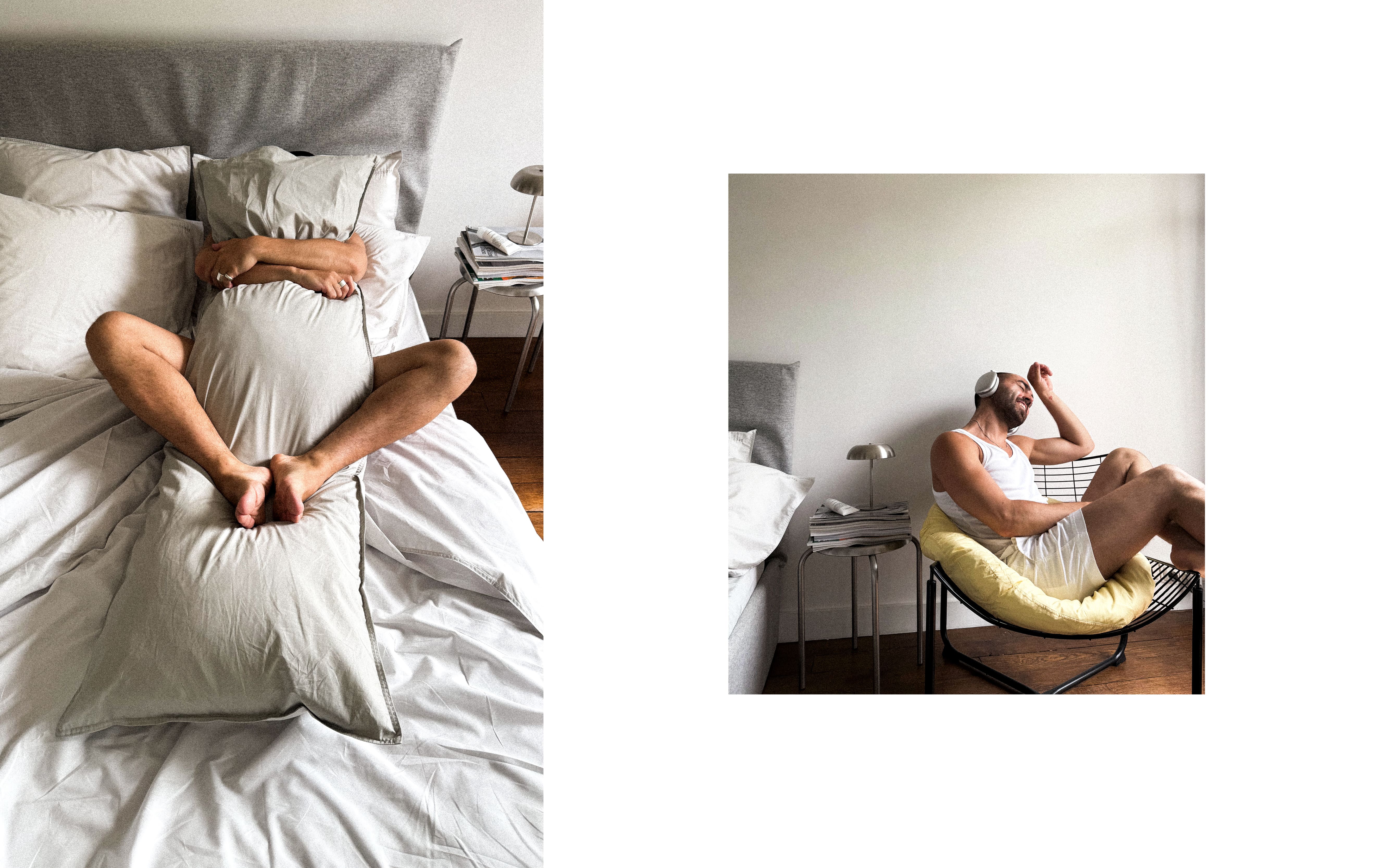 The bedMATE is the most iconic item in our collection. This extra-long pillow serves as a headboard, but also as a cuddle buddy, a supportive friend.