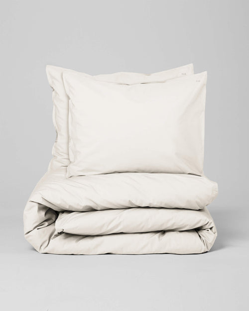This off white luxury bedding made of organic percale cotton has a thread count of 300. Percale cotton is wonderfully smooth and crispy crispy. Duvet cover has a blind closure with buttons without a tuck-in strip. A set consists of a duvet cover with 1 or 2 pillowcases.