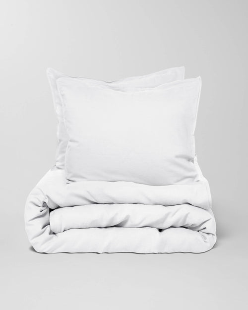 The organic, washed linen is 55% linen and 45% cotton. The sturdy linen look, but wonderfully soft. The duvet cover has a blind closure with buttons without a tuck-in strip. The set consists of a duvet cover and comes with two pillowcases.