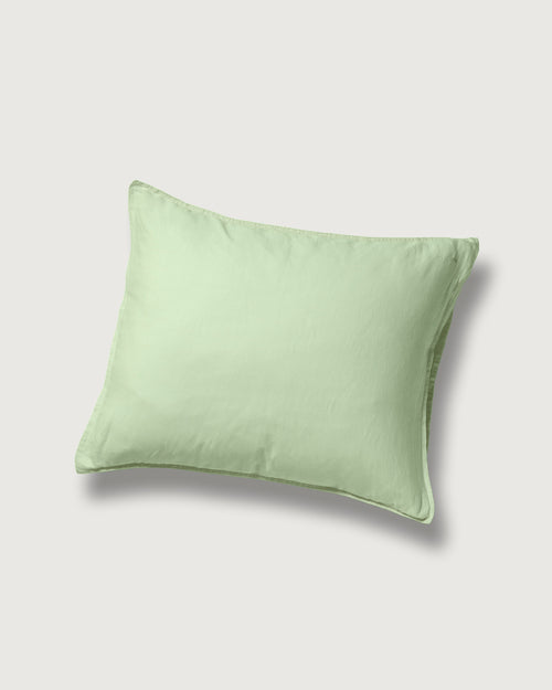 The green washed linen pillowcase combines 67% linen with 33% cotton. Linen breathes and absorbs moisture without feeling clammy, while cotton provides extra softness. The linen in this blend is European Flax™ certified.
