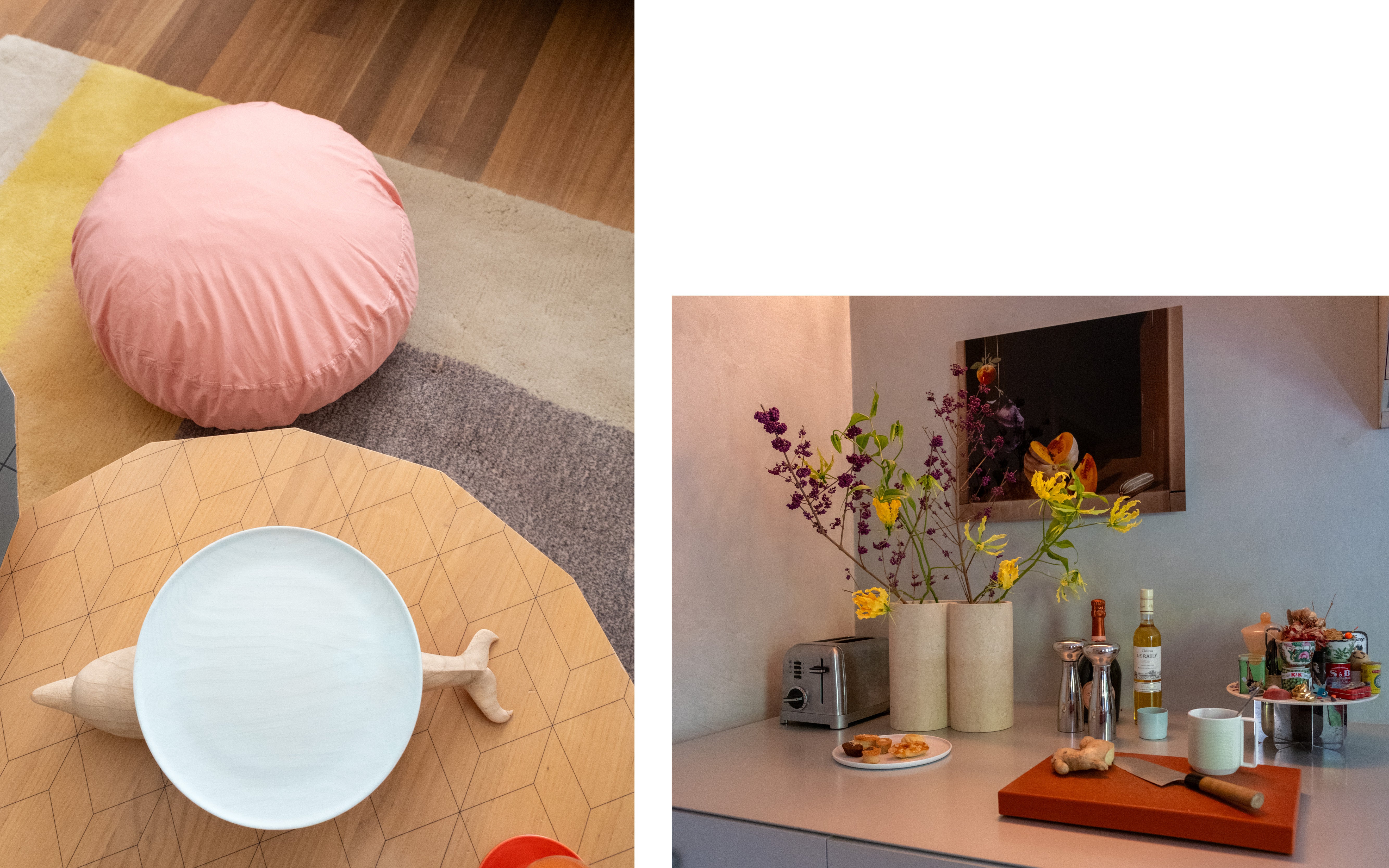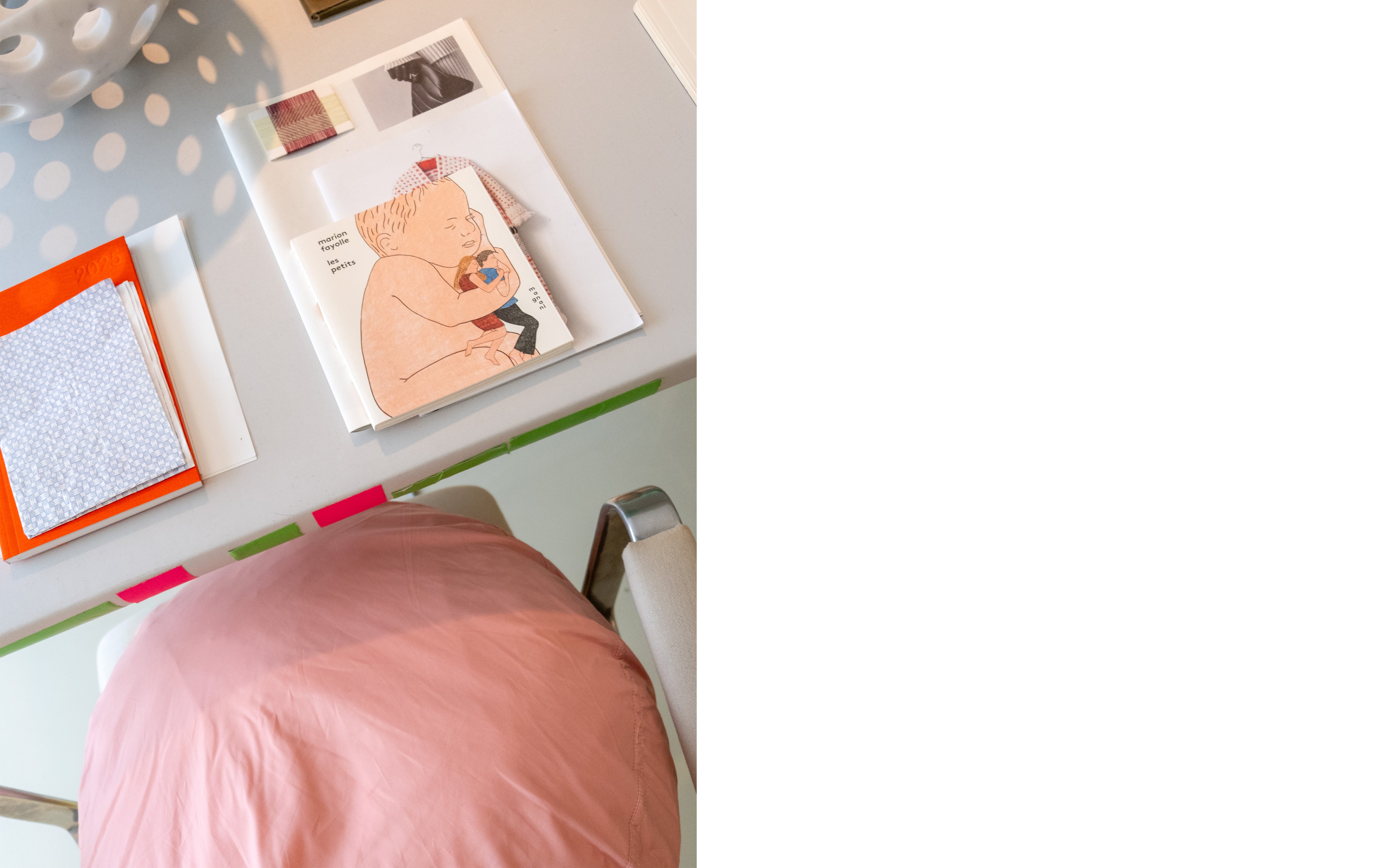 Sa philosophie du design ? C'est le « travail en atelier ». « Cela signifie que nous fabriquons à la main nos propres couleurs, matériaux et motifs, créant ainsi des formes et des structures nouvelles et uniques. J'aime le détail, et le travail manuel nous permet d'atteindre cette précision, qu'il s'agisse de trouver la nuance exacte de rose fluo ou d'ajuster subtilement les proportions d'une chaise pour un confort accru. »