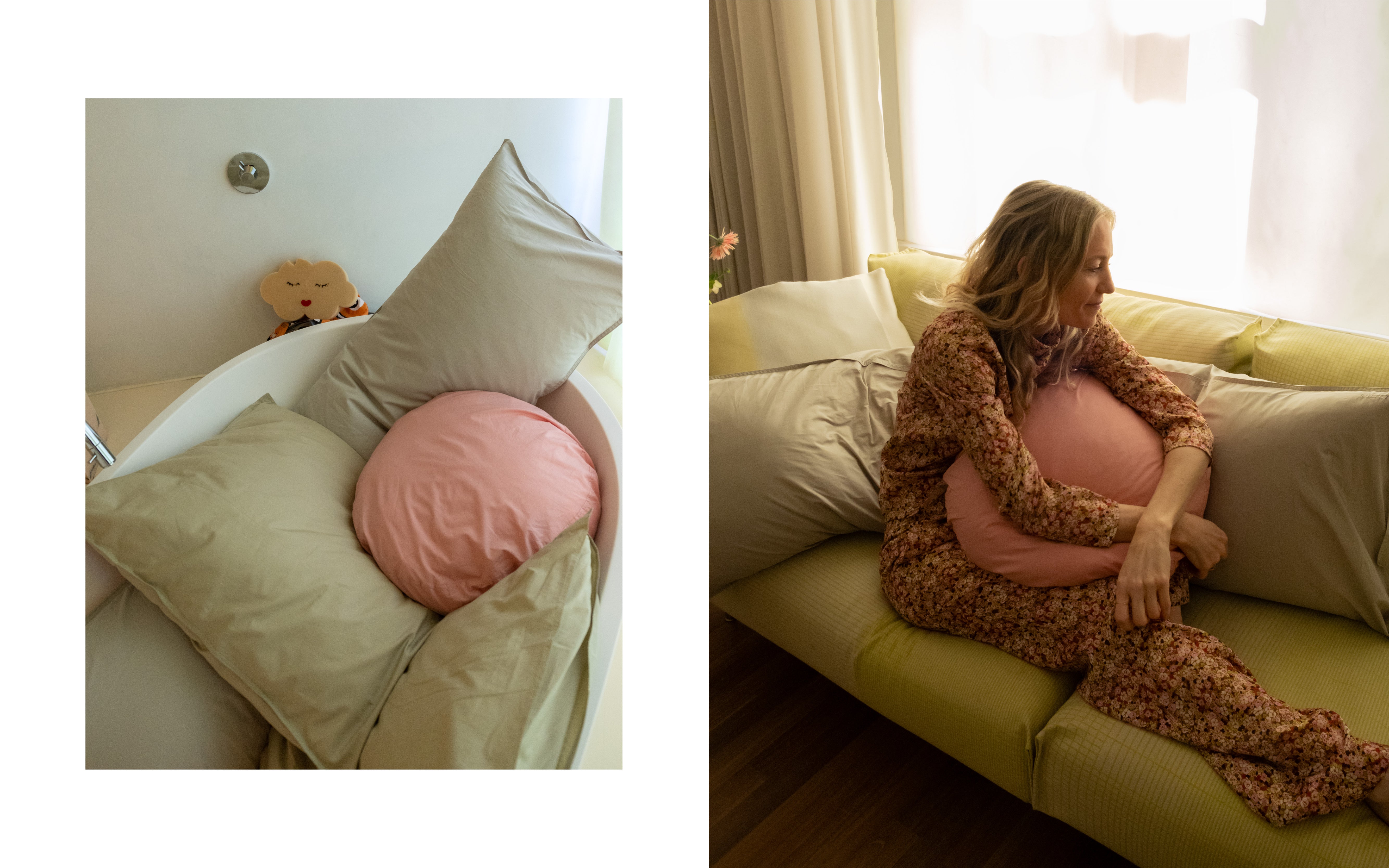 Le lit est l'élément le plus emblématique de notre collection. L'oreiller extra-long fait office de tête de lit, mais aussi de compagnon câlin, d'ami qui apporte soutien et réconfort.