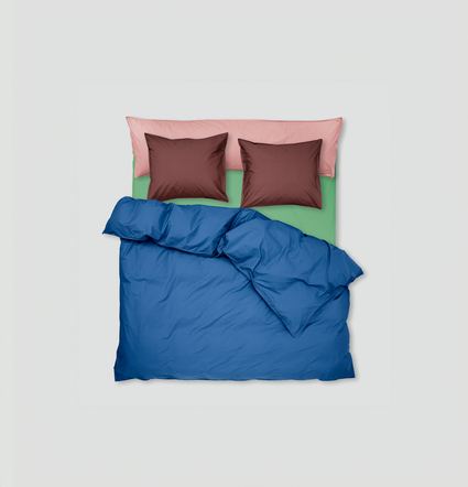 Sur le lit de Gebrand, il y a un joyeux mélange d'une couette Bleu Cobalt , d'undrap-housse Vert Jade , d'oreillers Rouge Brique et d'un bedMATE Dusty Rose . « Dans le passé, j'avais souvent tout ce qui était d'un blanc croustillant, mais aujourd'hui, j'essaie de l'alterner avec de la couleur. Ce qui est bien, c'est que vous pouvez immédiatement créer une atmosphère complètement différente dans votre chambre avec la couleur. Pour moi, la couleur a tout à voir avec la positivité et la joie de vivre. En ce moment, j'ai beaucoup de vert et de bleu dans ma maison, que je trouve une combinaison agréable et apaisante. En général, j'aime les couleurs assez fortes et pleines. Je comprends si les gens trouvent cela passionnant, surtout lorsqu’ils achètent des articles plus volumineux. Mais il s’agit aussi simplement d’essayer. Achetez ce vase jaune vif. Si cela n'a pas l'air bien, échangez-le contre une couleur différente. Ou essayez une couleur sur le mur. Le pire qui puisse arriver, c'est de devoir repeindre le mur en blanc.