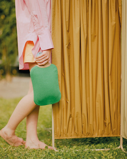 La bouillotte est fabriquée en latex de caoutchouc naturel et possède une housse tricotée en coton 100 % biologique. L'étui est merveilleusement doux et ne démange pas. Le col du boîtier est toujours de couleur camel, à cause de cette composition, beaucoup de gens appellent le boîtier un pull. Nous avons la verseuse et le couvercle dans 7 compositions uniques différentes, où la verseuse en caoutchouc a toujours une couleur différente de celle du couvercle.