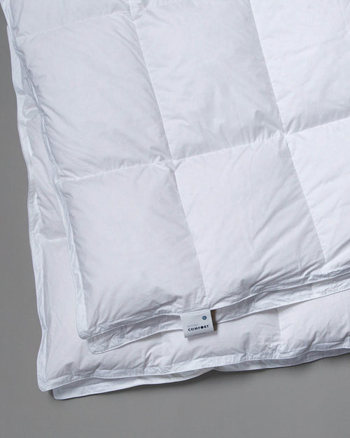 Belle couette luxueuse et bien remplie. La couette confort d'hiver est garnie de duvet de canard blanc hollandais et possède une classe de chaleur 2. Une belle couette épaisse et chaude sous laquelle on peut se glisser et qu'on ne ressort de préférence qu'après l'hiver.