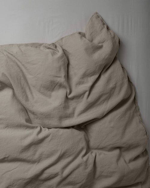 La literie en lin lavé biologique est composée à 55 % de lin et à 45 % de coton. La housse de couette a une fermeture aveugle avec des boutons sans bande de serrage. La housse de couette gris lin est fournie sans taies d'oreiller , que vous pouvez commander séparément dans la couleur de votre choix.