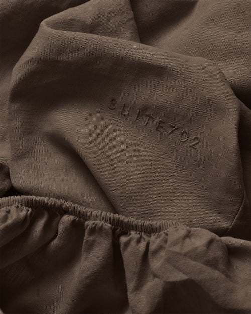 Drap-housse en lin de couleur marron foncé composé de 55 % de lin et 45 % de coton, respire bien. A une texture tissée mate légèrement plus grossière. Grâce à l'ajout de coton, nos draps-housses en lin sont plus doux que les draps-housses 100% lin. Le drap-housse a un bord de 30 cm, est élastique sur tout le pourtour et peut donc également être utilisé avec des surmatelas. Convient pour une hauteur de matelas de 25 cm (surmatelas compris).