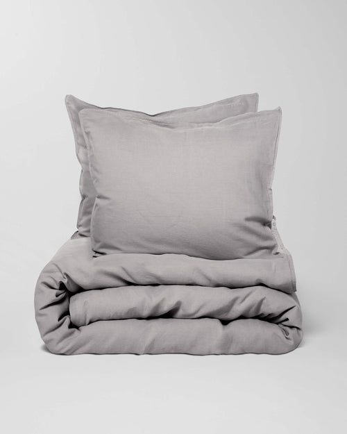 Le lin biologique lavé est composé à 55 % de lin et à 45 % de coton. L'aspect lin robuste, mais merveilleusement doux. La housse de couette a une fermeture aveugle avec des boutons sans bande de serrage. Cet ensemble gris clair se compose d'une housse de couette et est livré avec deux taies d'oreiller.