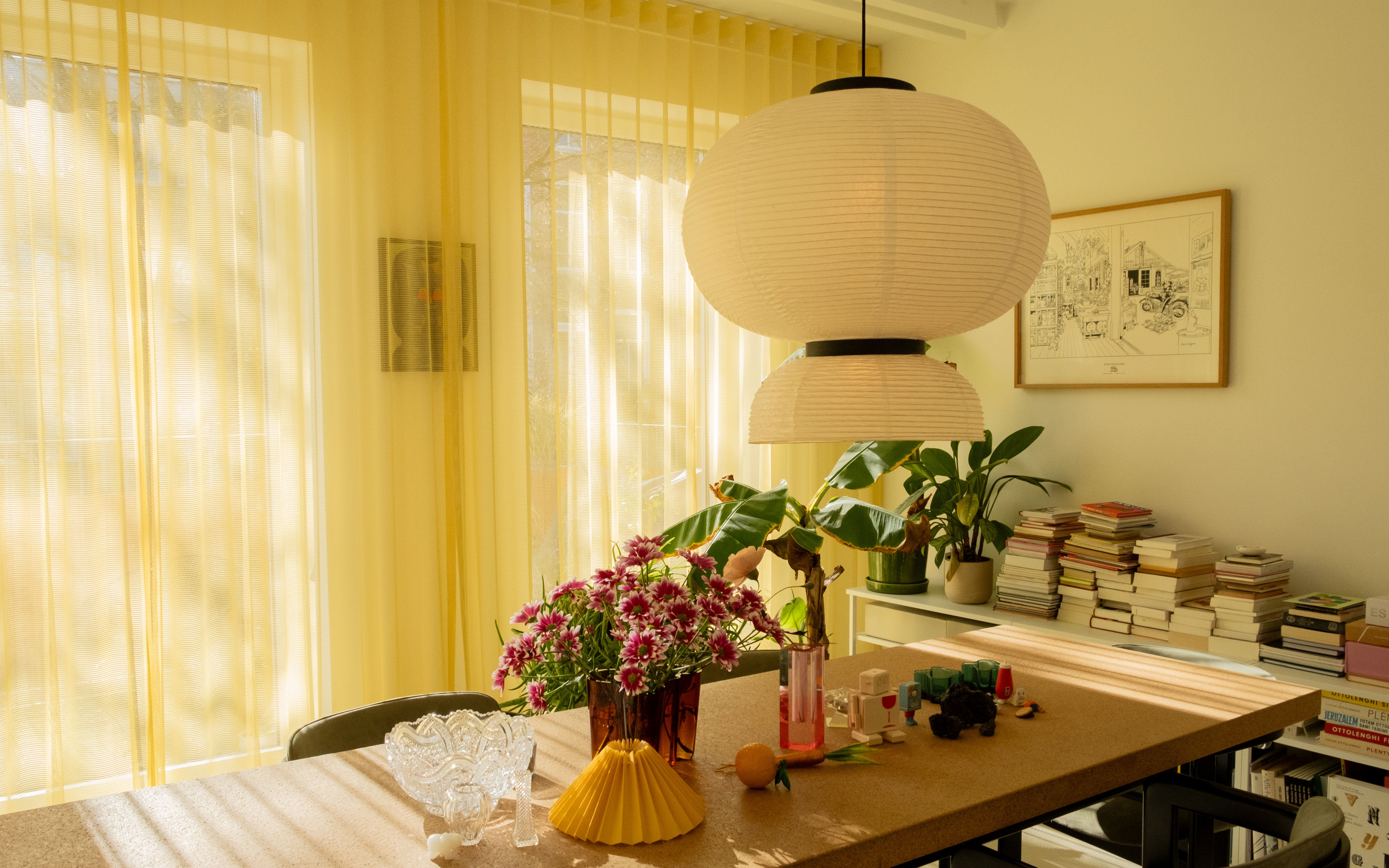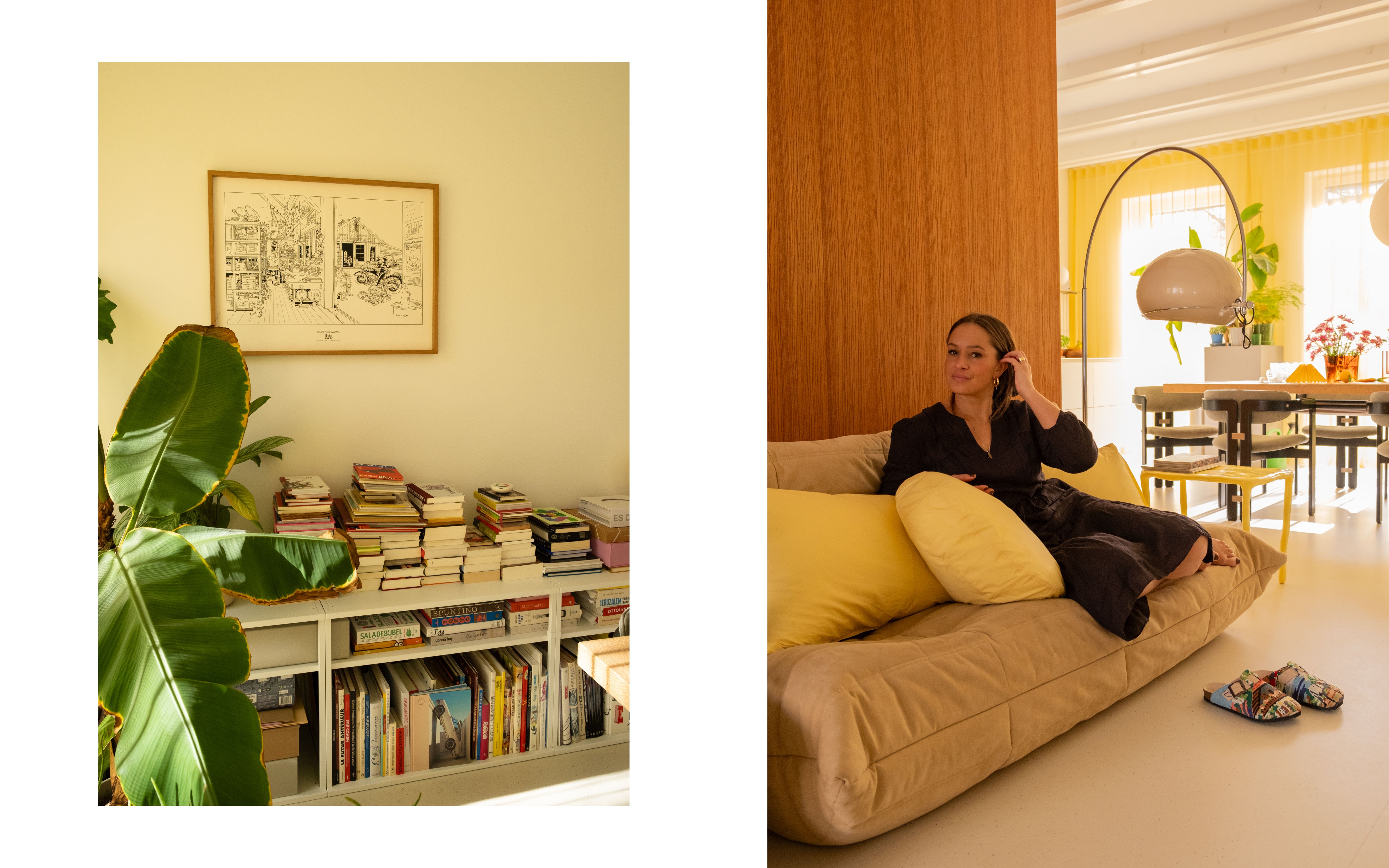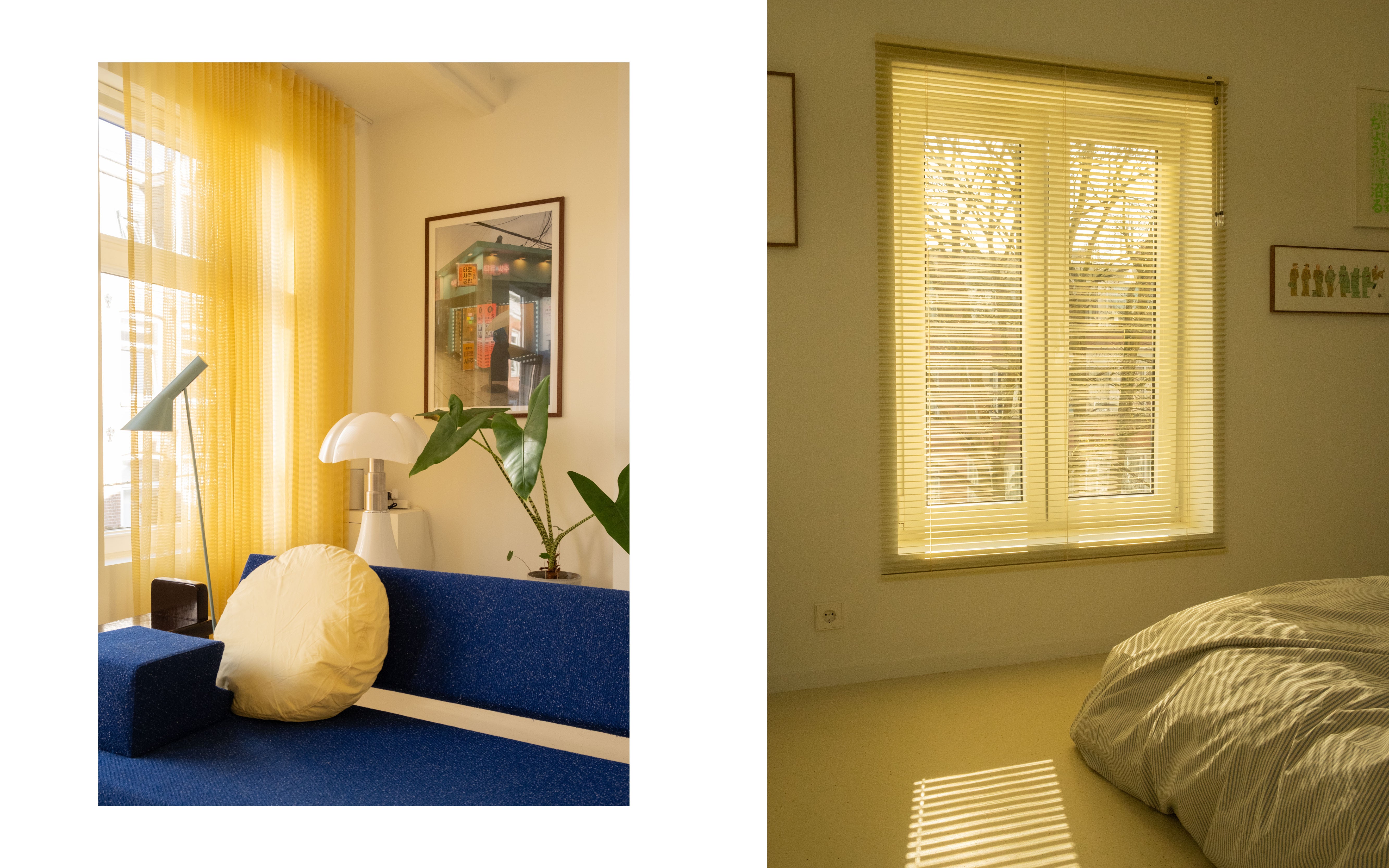 Deze maand bezochten we, samen met fotografe Marie-Louise Hodge, Floor Knaapen. Floor woont in De Pijp in Amsterdam. Hoewel je misschien zou verwachten dat een woning op drie hoog klein en krap is, stap je bij Floor binnen in een ruime oase van kleur, creativiteit en designobjecten. Floor is art director, set designer en fotograaf — en al deze talenten komen samen in haar interieur.