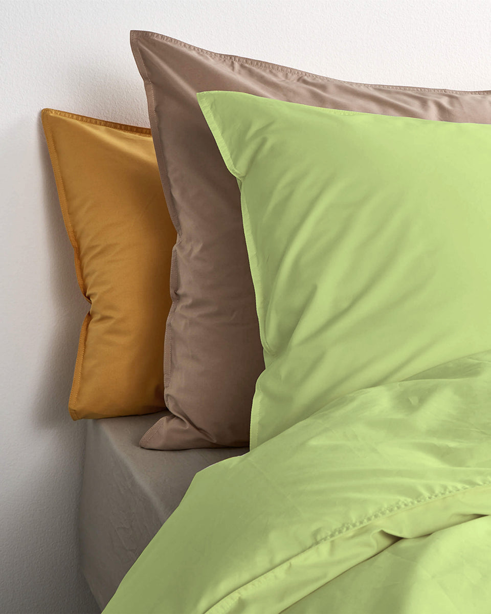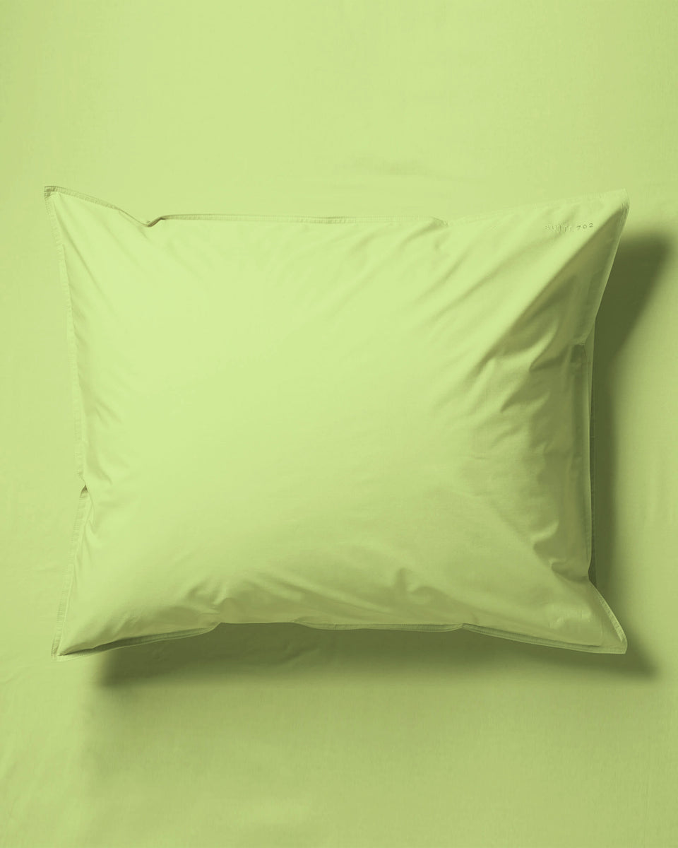 Dit licht groene luxe beddengoed van biologisch percale katoen heeft een draaddichtheid (threadcount) van 300. Percale katoen is heerlijk glad en krakerig crispy. Dekbedovertrek heeft een blinde sluiting met knoopjes zonder instop strook. Een set bestaat uit een dekbedovertrek met 1 of 2 kussenslopen.