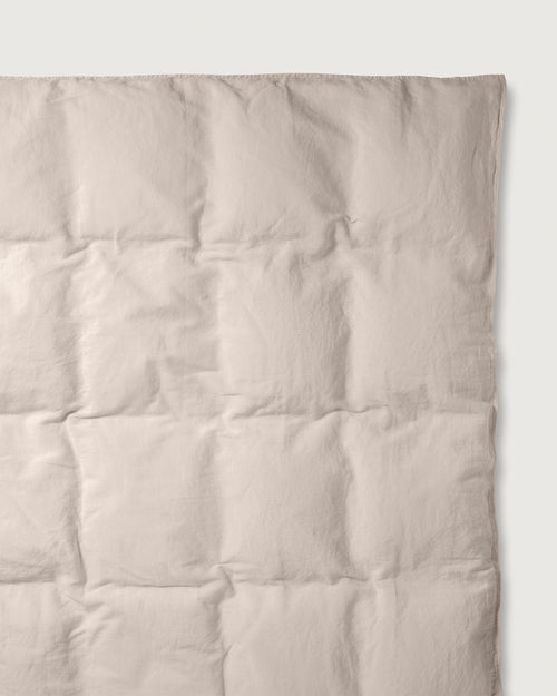 Het grijze washed linnen dekbedovertrek combineert 67% linnen met 33% katoen. Linnen ademt en absorbeert vocht zonder klam aan te voelen, terwijl katoen zorgt voor extra zachtheid. Het linnen in deze blend is European Flax™ gecertificeerd.