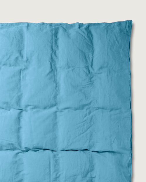 Het blauwe washed linnen dekbedovertrek combineert 67% linnen met 33% katoen. Linnen ademt en absorbeert vocht zonder klam aan te voelen, terwijl katoen zorgt voor extra zachtheid. Het linnen in deze blend is European Flax™ gecertificeerd.