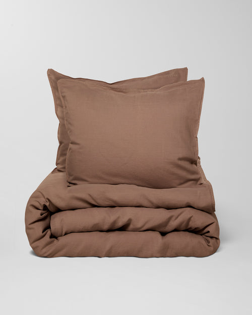 Het organic, washed linnen is 55% linnen en 45% katoen. De stoere linnen look, maar heerlijk zacht. Het dekbedovertrek heeft een blinde sluiting met knoopjes zonder instop strook. De set bestaat uit een dekbedovertrek en wordt geleverd met één of twee kussenslopen.