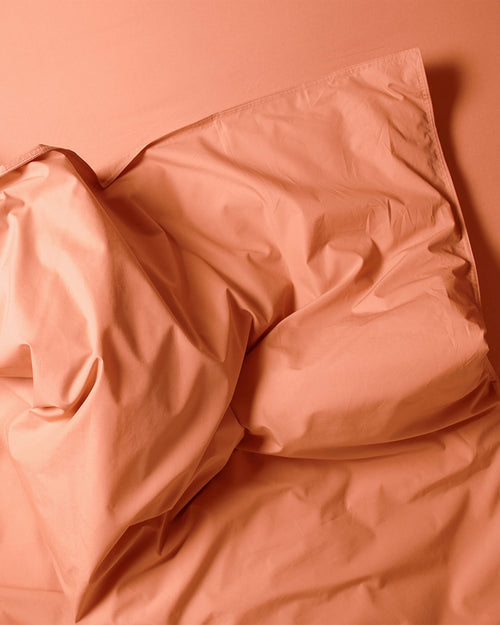 Dit perzik kleurige luxe hotelkwaliteit dekbedovertrek van biologisch percale katoen heeft een draaddichtheid (threadcount) van 300. Percale voelt heerlijk glad en krakerig als een vers opgemaakt bed. Het dekbedovertrek heeft een blinde sluiting met knoopjes zonder instopstrook. Kussenslopen bestel je, in een kleur naar keuze, er apart bij.