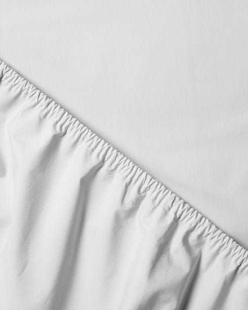 Licht grijs hoeslaken van biologisch percale katoen ademt goed en voelt heerlijk glad aan. Het hoeslaken heeft een 30 cm hoge rand, elastiek helemaal rondom en is daardoor ook geschikt voor om toppers. Geschikt tot een matras hoogte van 25 cm (inclusief topper).