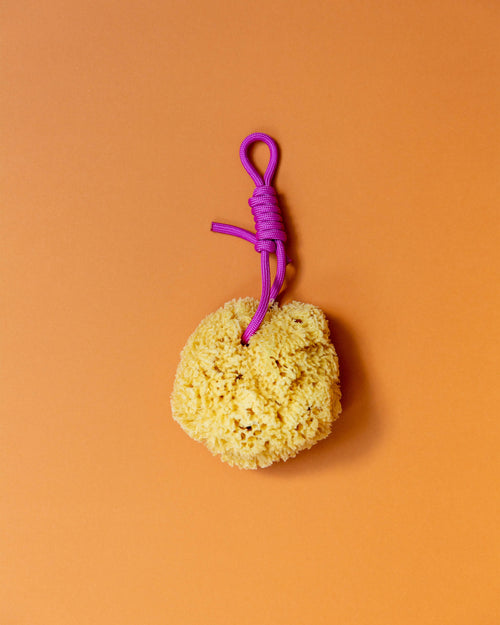 De natuurspons hangt aan een handig koord in een felle kleur. Het koord wordt in Nederland gemaakt van gerecycled PET. Combineer de spons met extra zachte handdoeken voor een echt luxe cadeau.